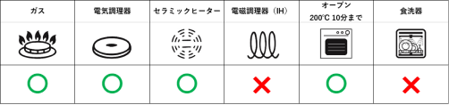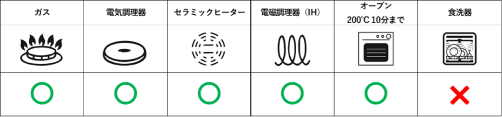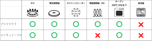*プリマテラはIHに対応、イノキュイーブルは対応していません。